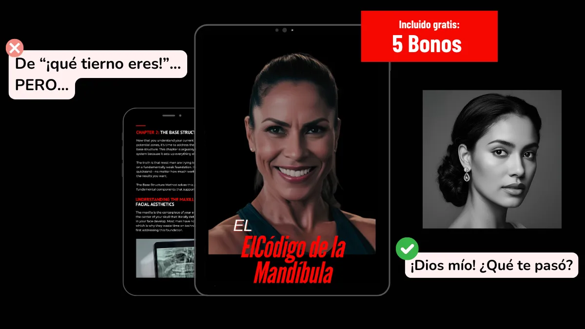 Optimización de la estructura ósea: Transforma rasgos faciales suaves en estructuras angulares y definidas — el factor #1 que predice la belleza femenina (y lo primero que los hombres realmente notan)